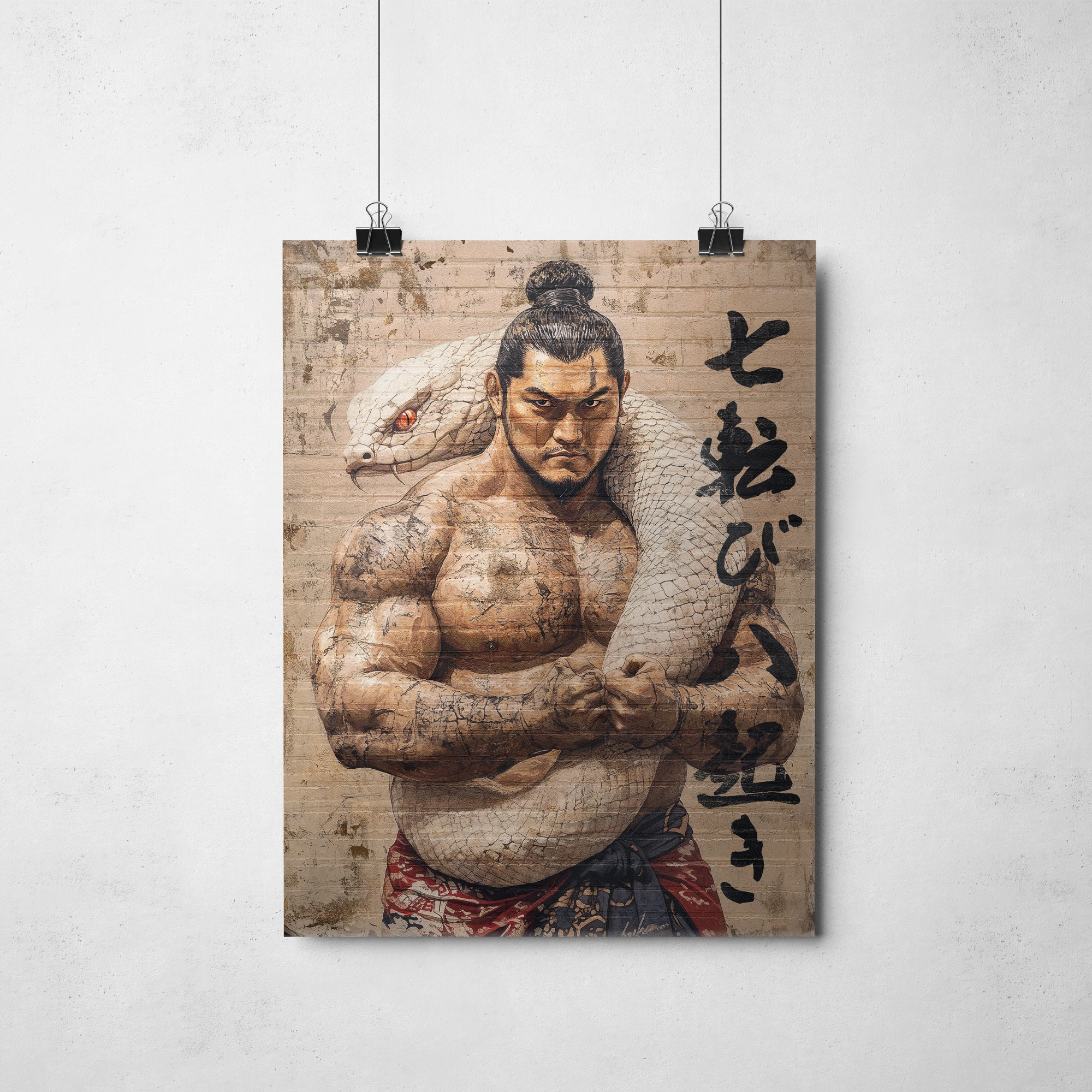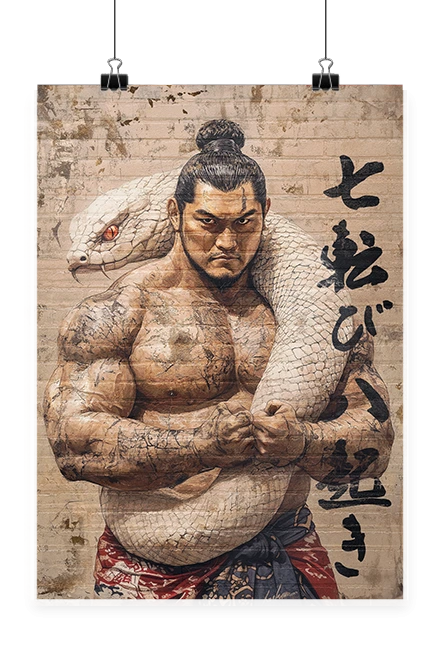 Jego zdolność do zrzucania skóry czyni go także symbolem odrodzenia i odnowy, co doskonale współgra z ideą przysłowia Nana Korobi Ya Oki – powstawania po każdym upadku. W tym kontekście wąż otaczający wojownika sumo podkreśla harmonię między siłą fizyczną a duchową.
